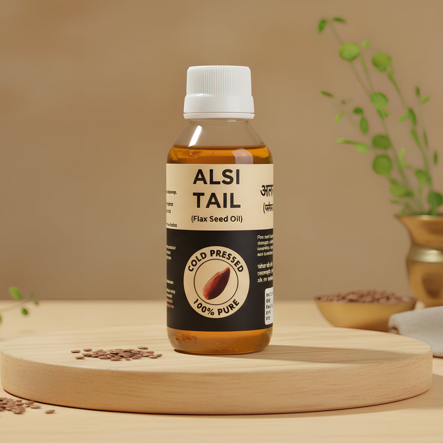 Alsi Tail, also known as Flaxseed Oil, is a traditional Ayurvedic oil valued for its deeply nourishing and soothing properties. Extracted from premium-quality flax seeds, this oil is rich in natural goodness that supports skin, joints, hair, and overall vitality.