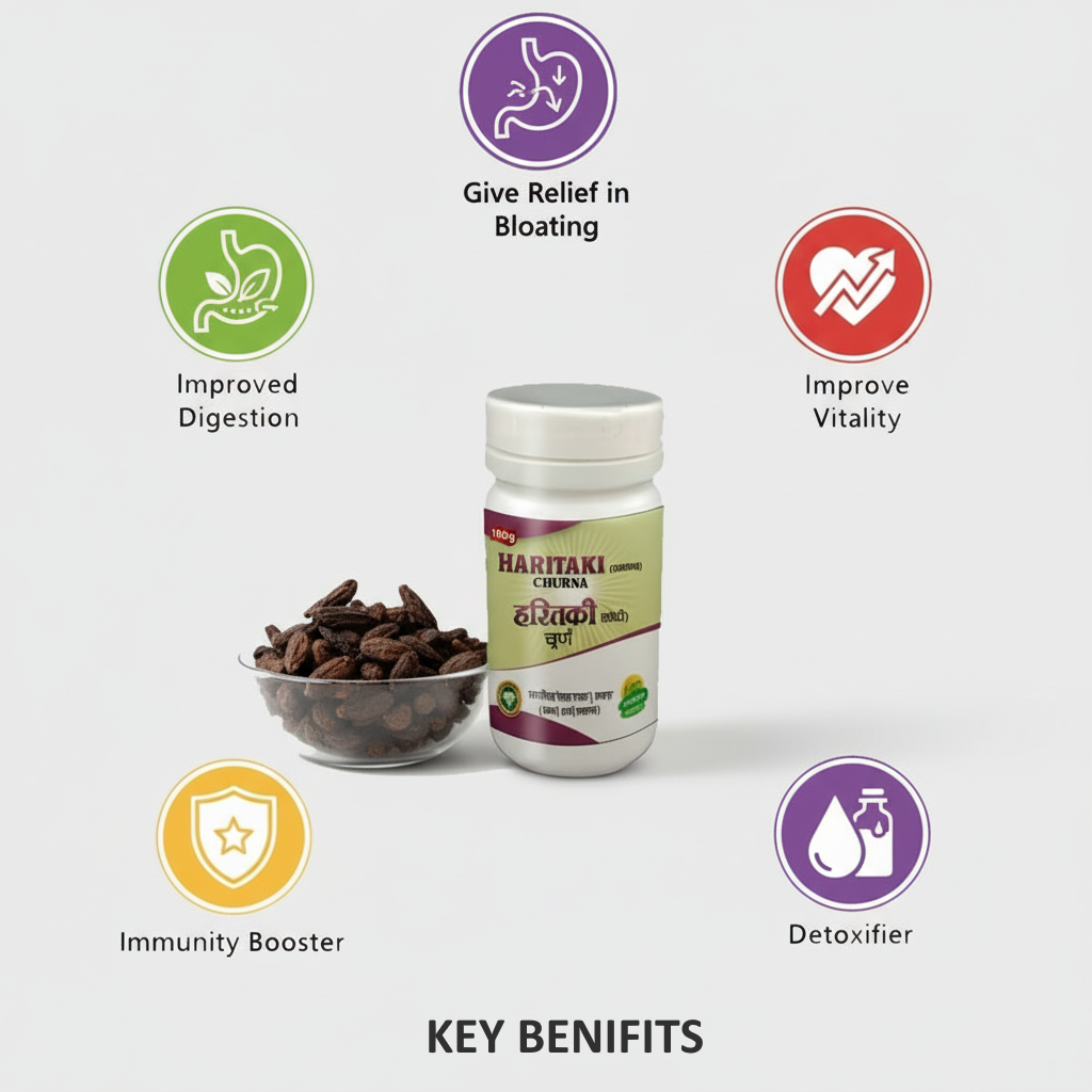 Haritaki is known as a Rasayana (rejuvenative herb) and supports digestion, detoxification, and longevity.