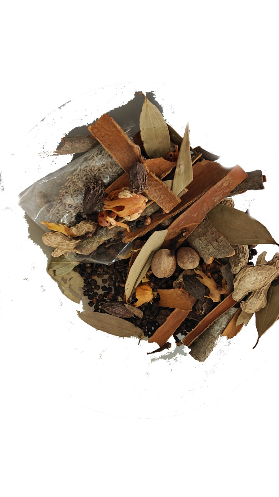 Jaiphal (Nutmeg): Adds depth with its sweet-spicy aroma.
