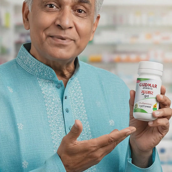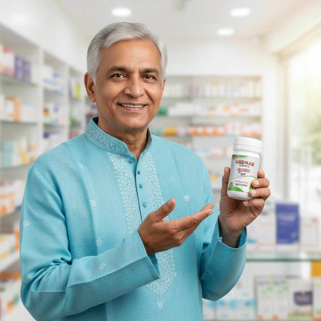 Gudmar, also known as Madhunashini in Ayurveda, literally means "destroyer of sugar." In the classical Ayurvedic text Bhav Prakash Nighantu, it is described under the category Guduchyadi Varga for its remarkable action on controlling excessive Madhur rasa (sweet taste) and managing Madhumeha (diabetes).